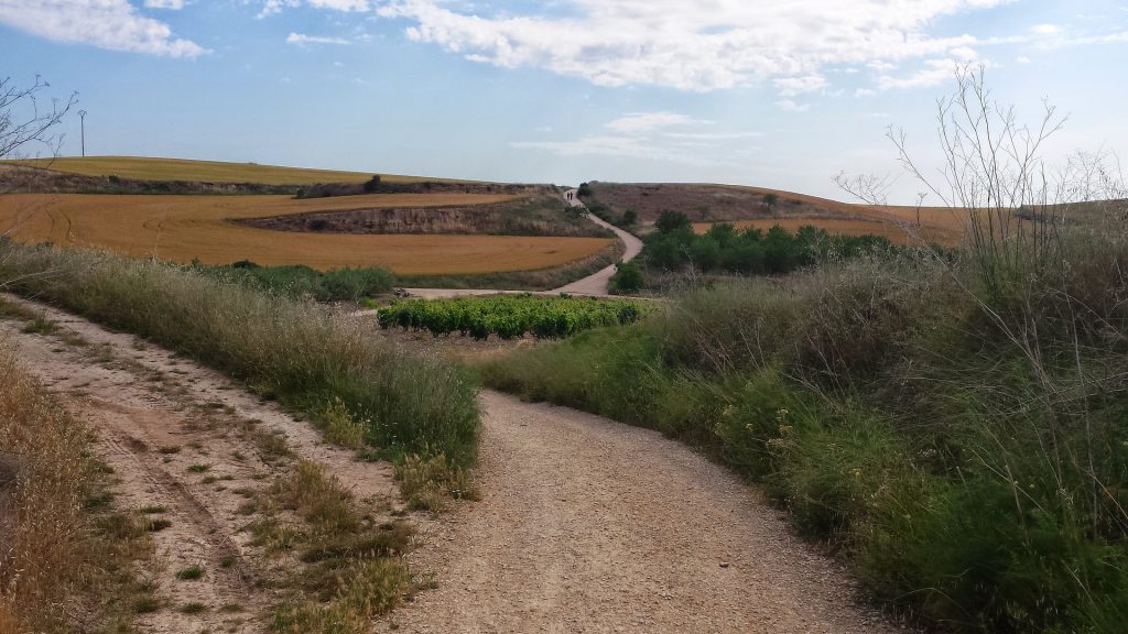 Vemos parte de duas setas laterais, que pode ser a convergência para um ponto central, a chegada a Santiago de Compostela, podem ser as setas do próprio caminho, ou então as pessoas de “outros mundos” que vêm com um mesmo objetivo: fazer o Caminho. Na nossa história representa a cumplicidade e convergência para a união.